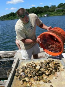 Rob Krause moved to Rhode Island with plans to start an oyster farm. He took graduate courses in Aquaculture at the University of Rhode Island and worked on Moonstone Oyster Farm with John West of Cedar Island Oyster Farm.